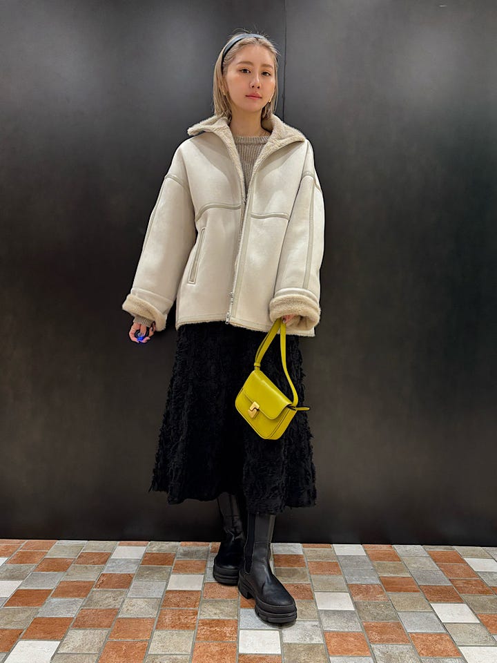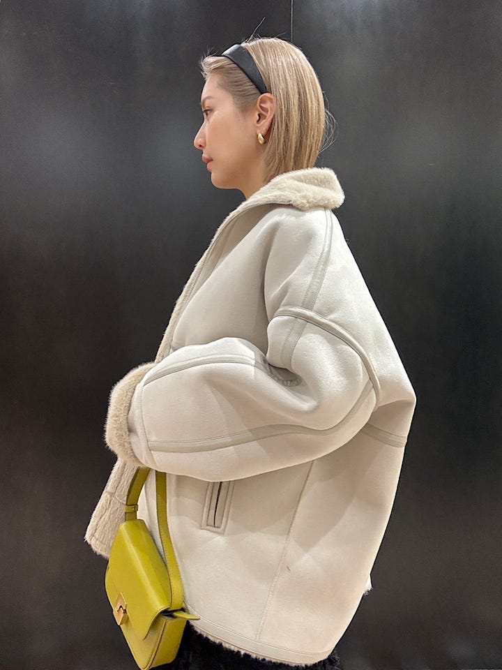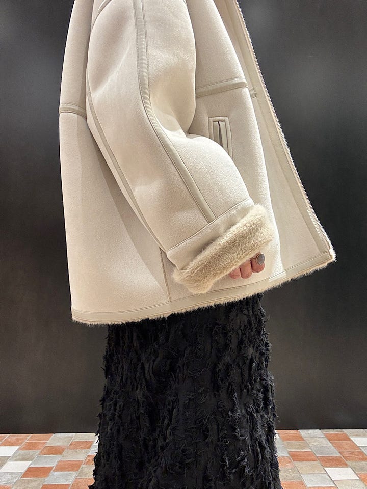 【素材感・着心地】内側が全面ファーになっておりとても気持ちのいい着心地。柔らかいムートン。