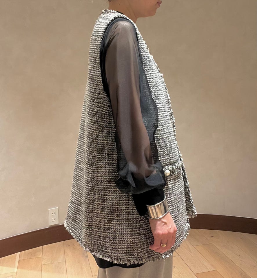 〔ONE SIZE〕トライスピン 杢 ツイード カラーレス ジレ(セレモニー対応可)