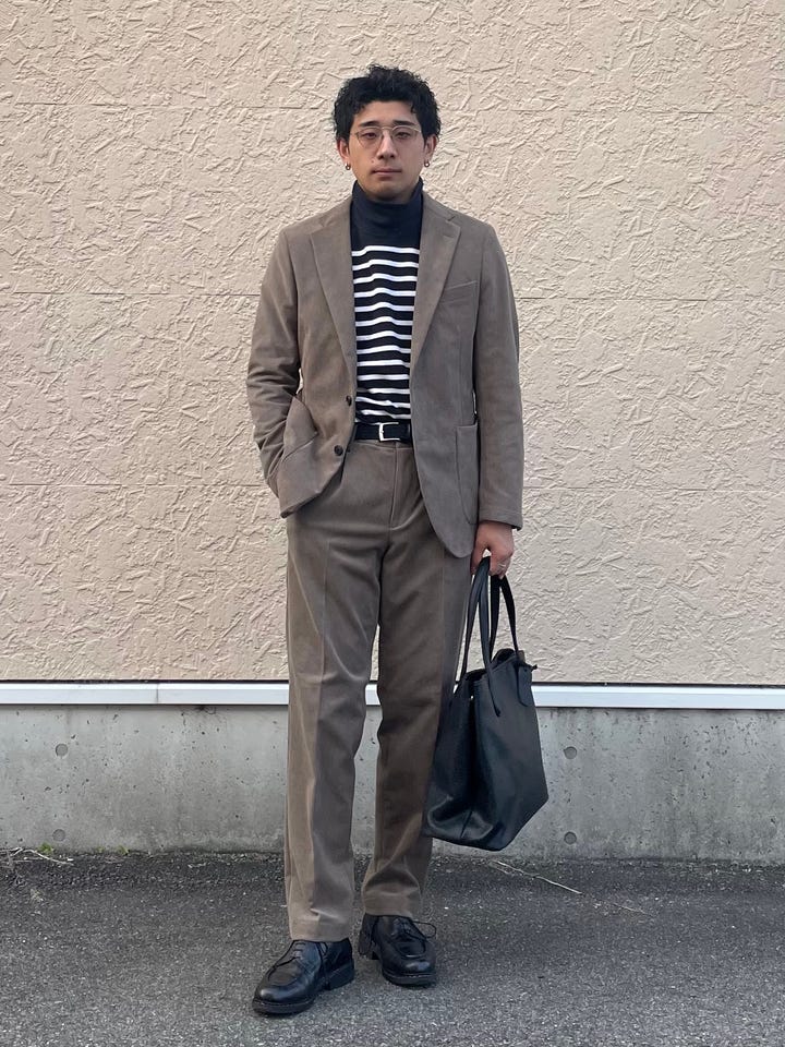 セットアップでも、デニムやチノパンなど、様々な合わせができます。