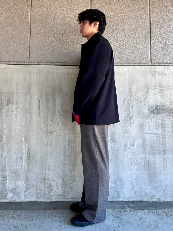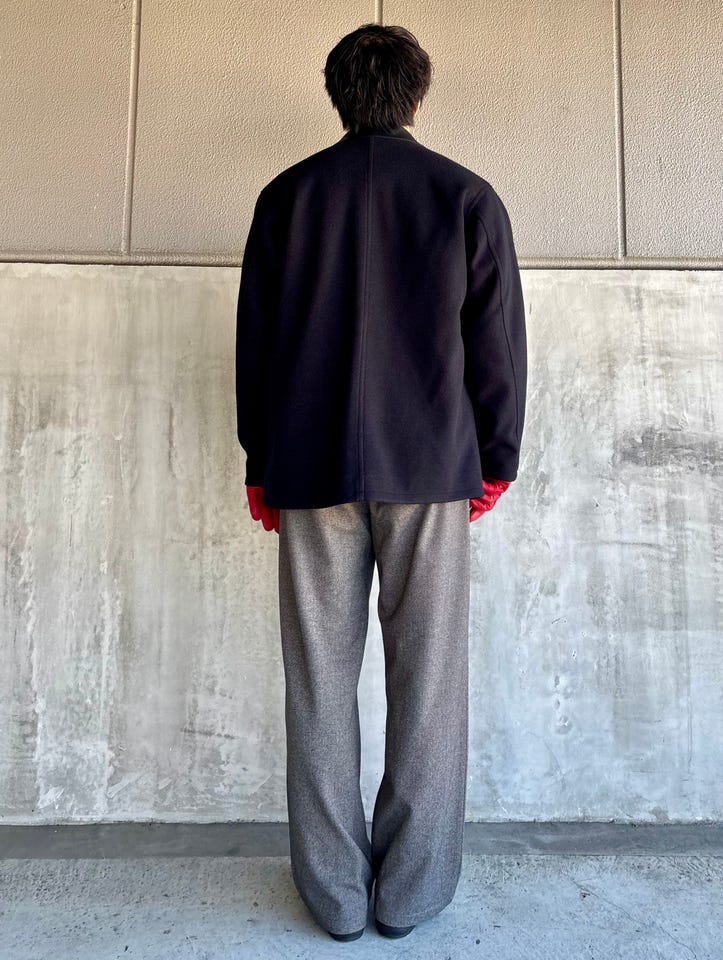 特徴:メルトンジャケット。オーバーサイズのため通常よりワンサイズダウンがおすすめです。柔らかく軽いためストレスなく着用できます。