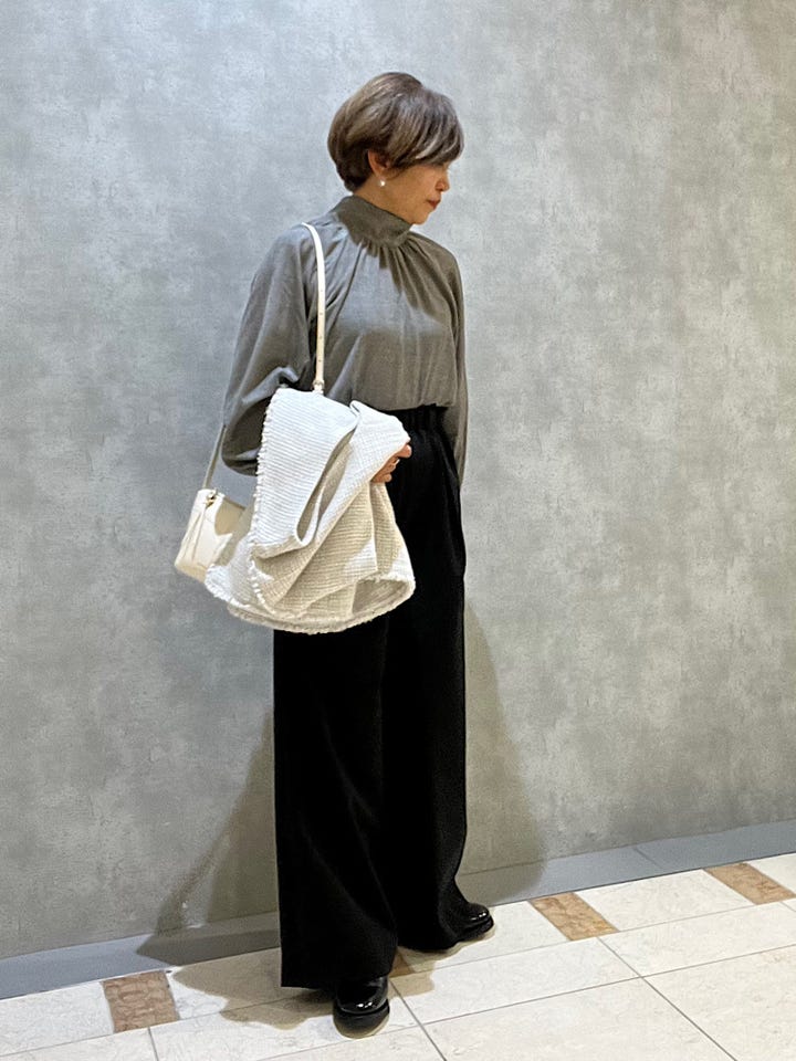 着用感 : ウール素材で薄手ですがじんわり暖かく肌触りもソフトです。ふわっとしたシルエットなので裾はアウトでもインでもバランスも良いです。