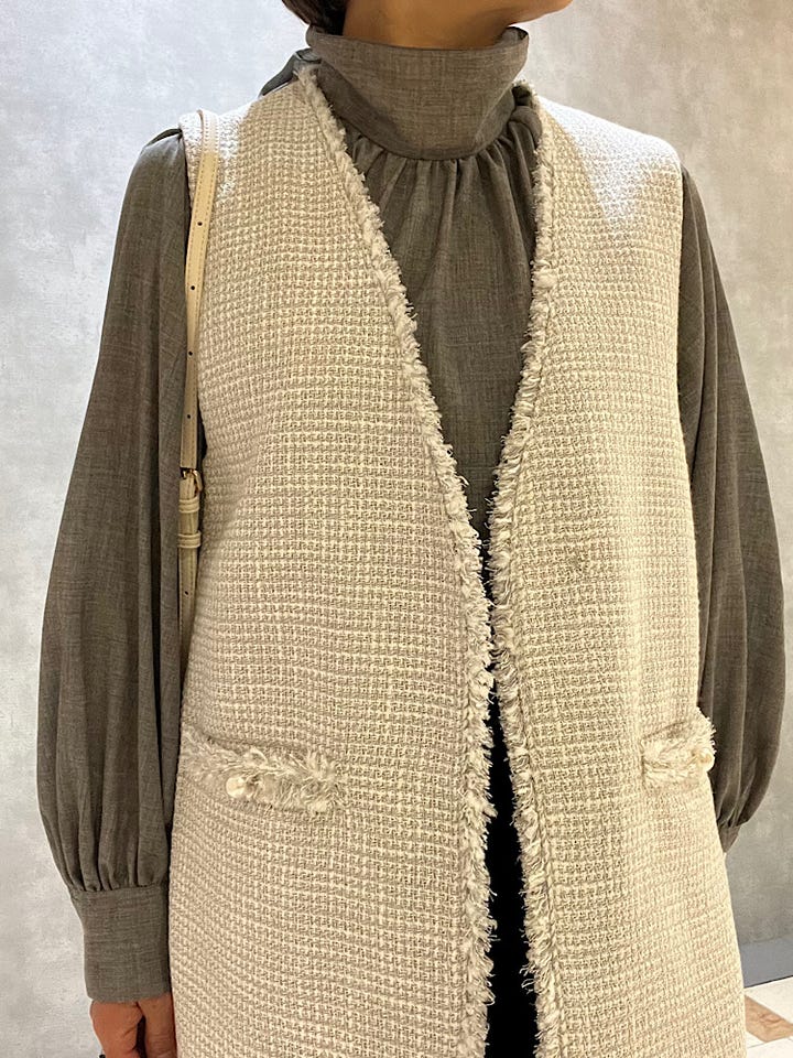 〔ONE SIZE〕トライスピン 杢 ツイード カラーレス ジレ(セレモニー対応可)