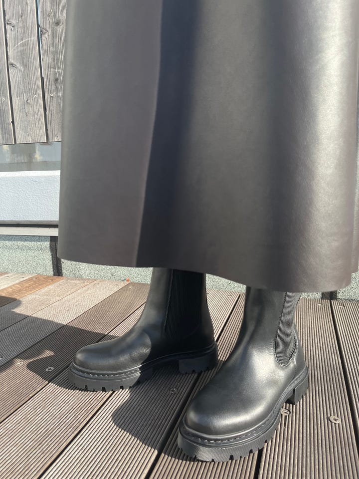 〔38〕SHIPS Primary Navy Label:〈手洗い可能〉合皮 Aライン スカート