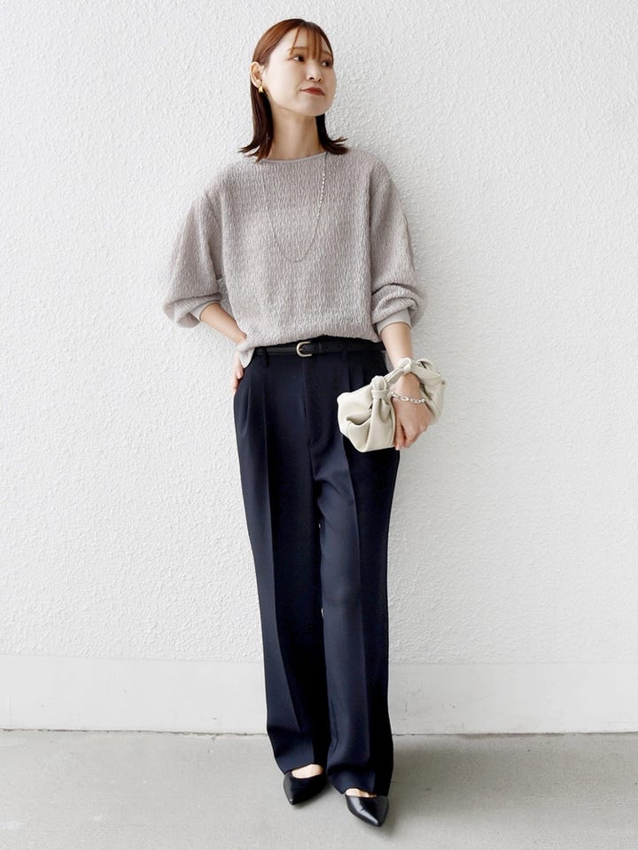 ■着心地:スッキリ見えしますが、着用感はゆったりとしていて楽です。通年穿きやすい1枚です。