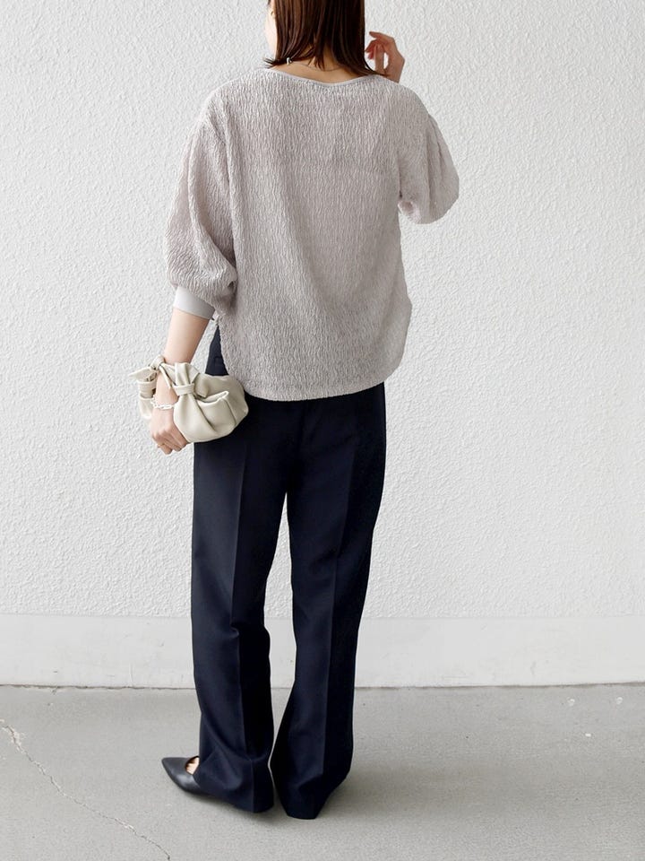 〔ONE SIZE〕《予約》〈手洗い可能〉ランダム ブルーゼ 袖 タック プルオーバー