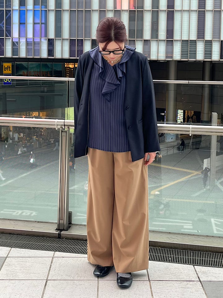 〔ONE SIZE〕〈手洗い可能〉フィブリル ストライプ フリル カラー ブラウス