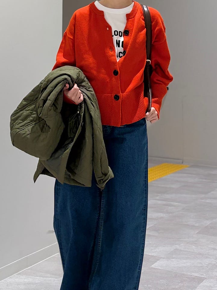 【素材感・着心地】カジュアルにもきれいめもどちらも着て頂けます!!前開きなので着回しも抜群です♪とにかく着心地が気持ちです♪首元がキーネックになっておりすっきりとした印象。