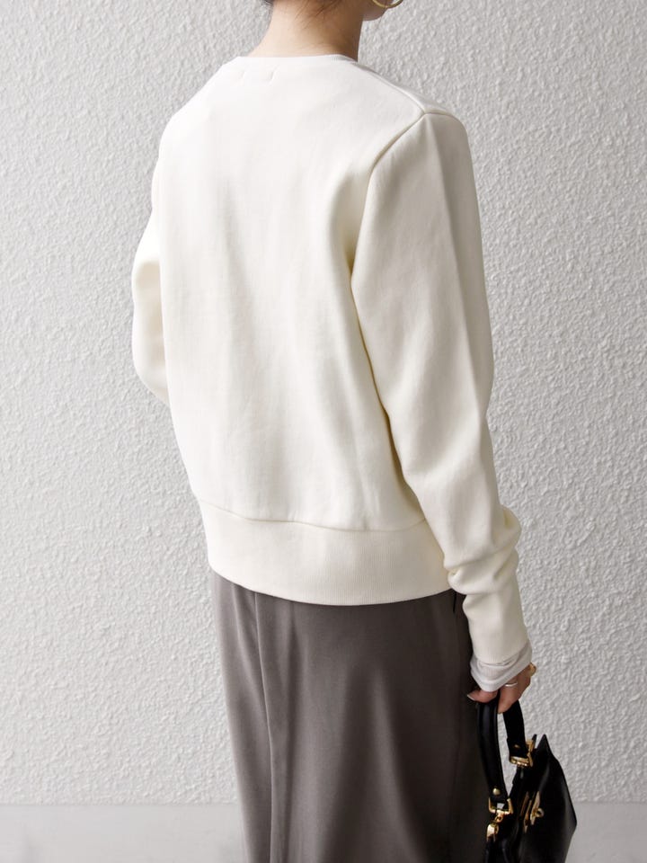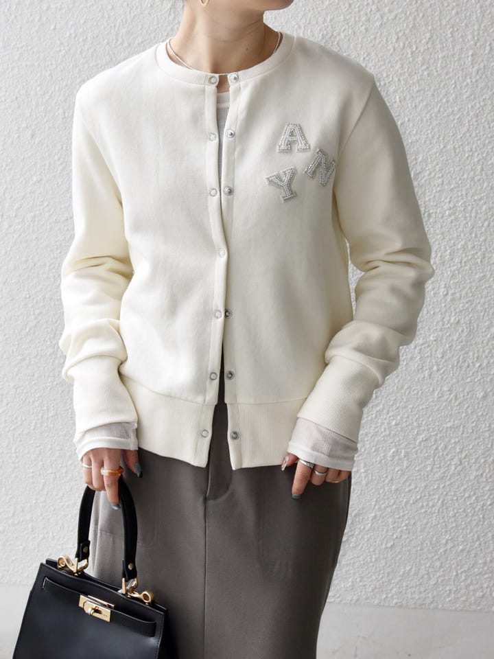 着用アイテム:SHIPS any:〈洗濯機可能〉裏起毛 ビジュー コンパクト スナップ カーディガン
