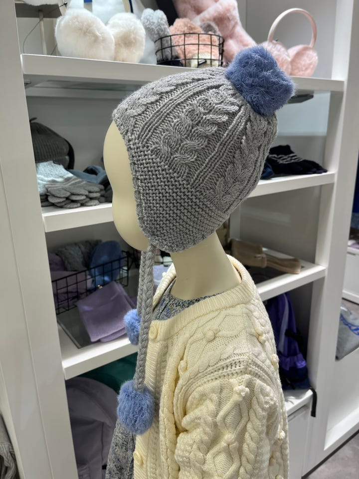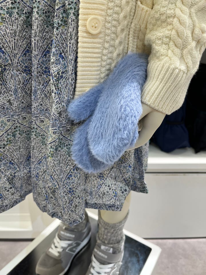 小物のニット帽と手袋のカラーを合わせて、アクセントにしました。
