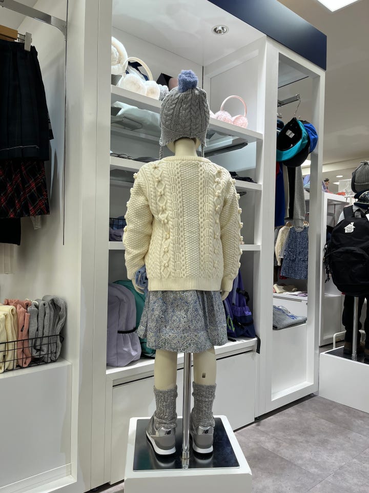 〔150〕SHIPS KIDS:140〜150cm /〈洗濯機可能〉ケーブル ニット ポンポン カーディガン