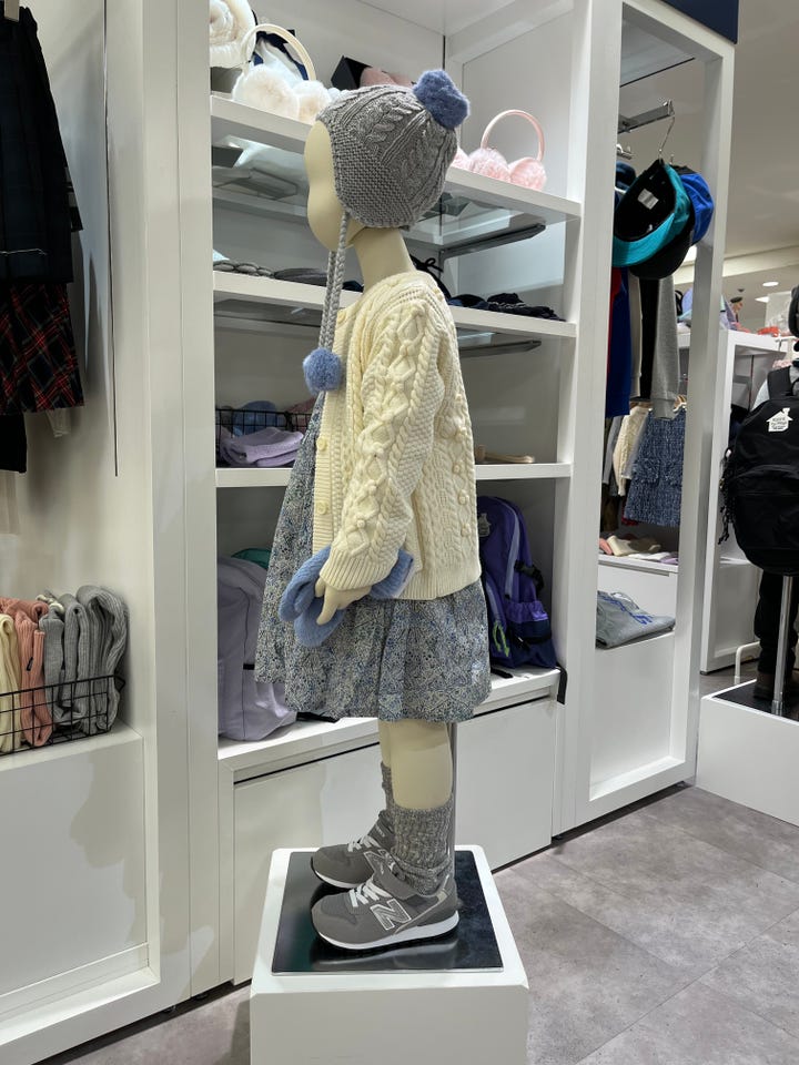 定番人気のリバティワンピースに、ウォーム感あるニットを合わせました。