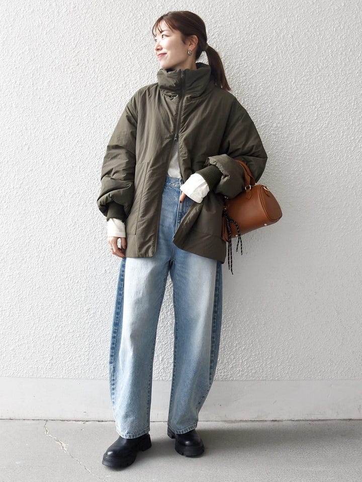 着用アイテム:中綿 ダブル ジップ スタンド ブルゾン オリーブ