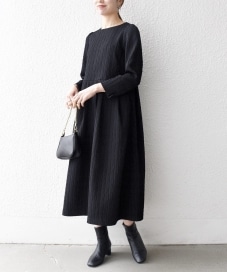 着用アイテム:ジャカード ウエスト タック ノーカラー ワンピース [NAVY BLUE] ブラック