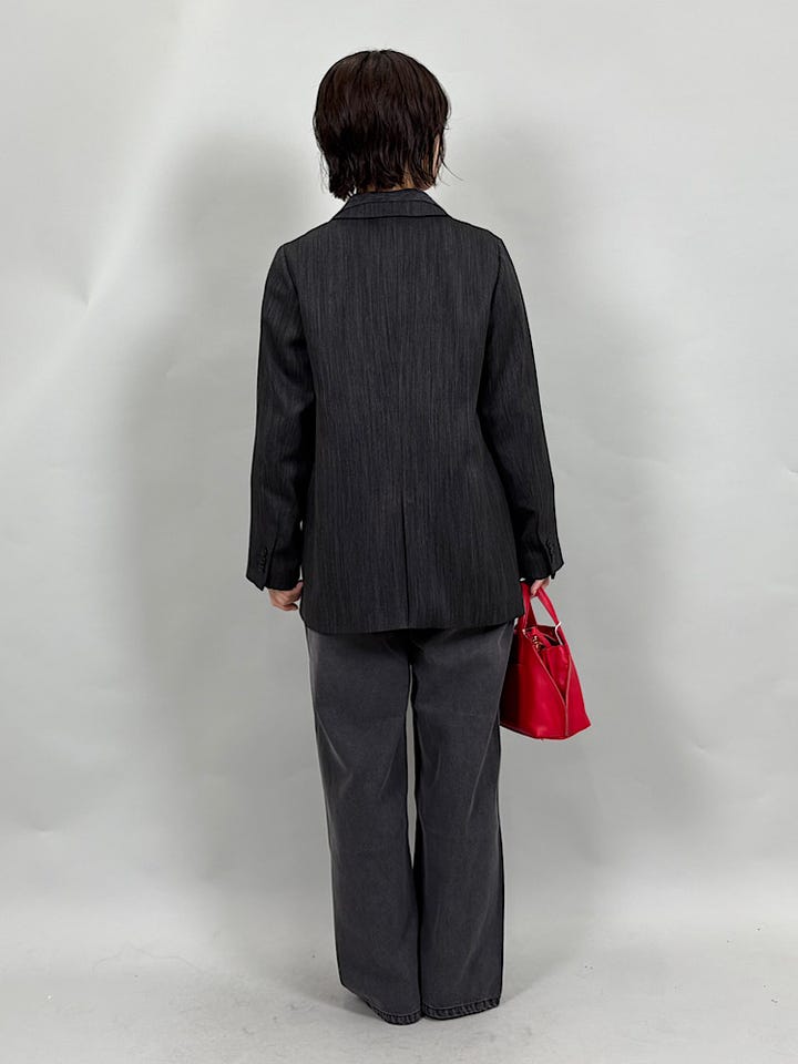 やわらかく光沢感のある素材。ウール見えする素材でしっかりとしていますが、とても軽く楽な着心地です◎オールシーズン着ていただけます。