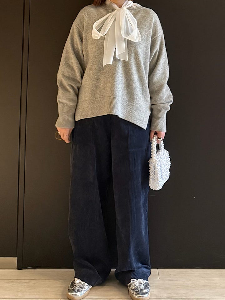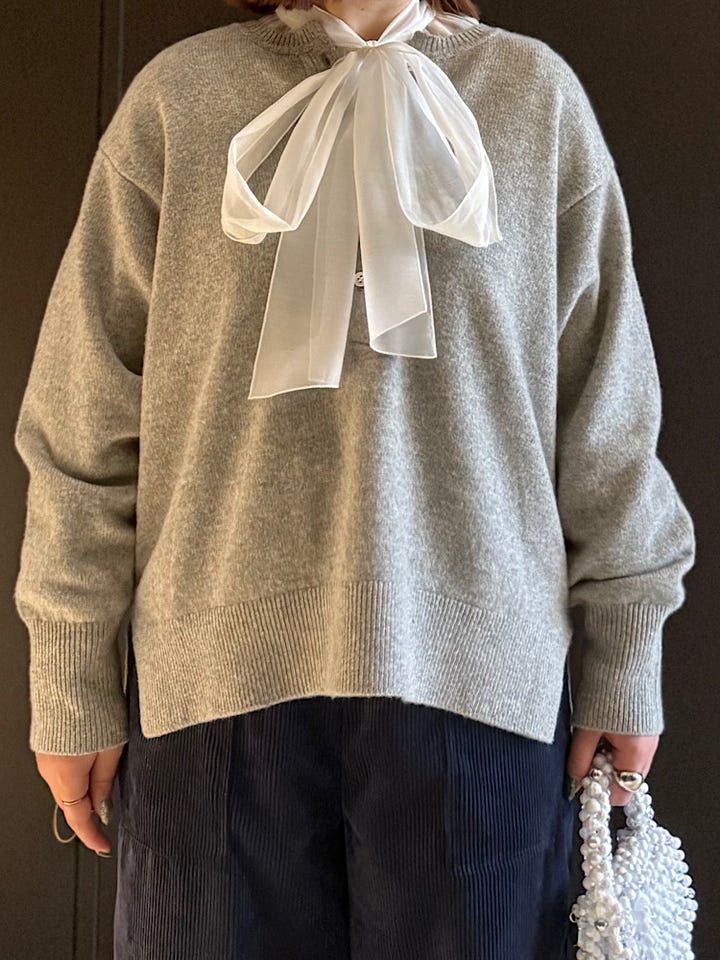【着心地】ブラウスは2サイズ展開で少し透け感があります。リボンはフロントやバック、ネクタイ風など結び方によっては雰囲気も変わるブラウスです。
