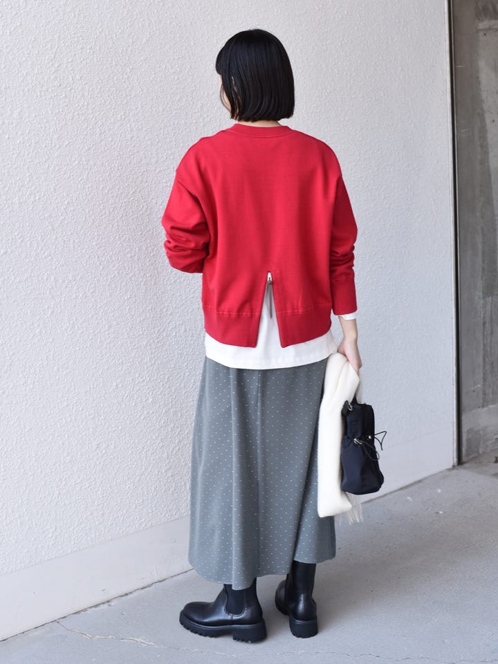 着用アイテム:〈手洗い可能〉スウェットライク バックジップ ニット◆