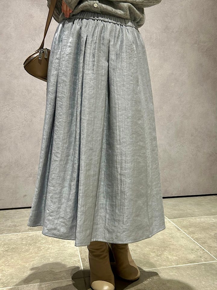 素材感・着心地:ウエストはゴムで履きやすいです。足首上の長さでロングブーツやタイツとも相性抜群です。フレアに広がるシルエットがかわいく、ニットはもちろんカジュアルにスウェットとのコーディネートもおすすめです。