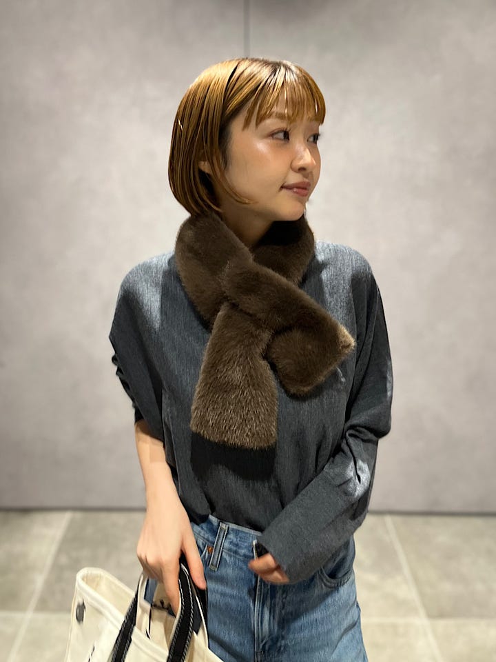 素材感・着心地:メリノウールのすっきりしたニットの表面が上品な印象です。ドルマンデザインで体のラインをひろいすぎず着やすいです。ハイネックすぎず首が詰まったデザインが苦手な方にもおすすめです。一枚でもきれいです。