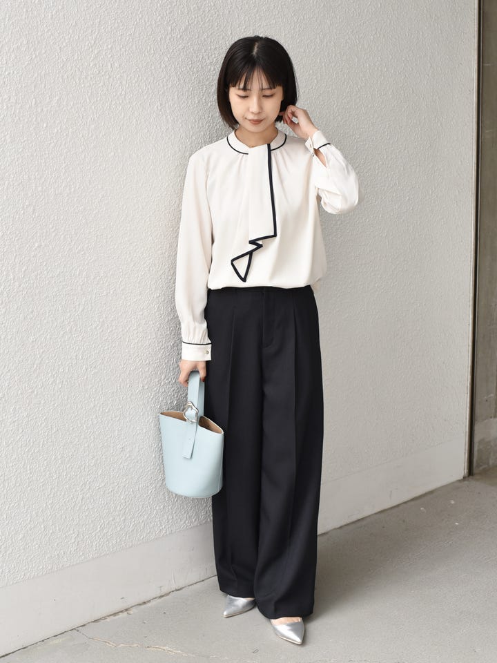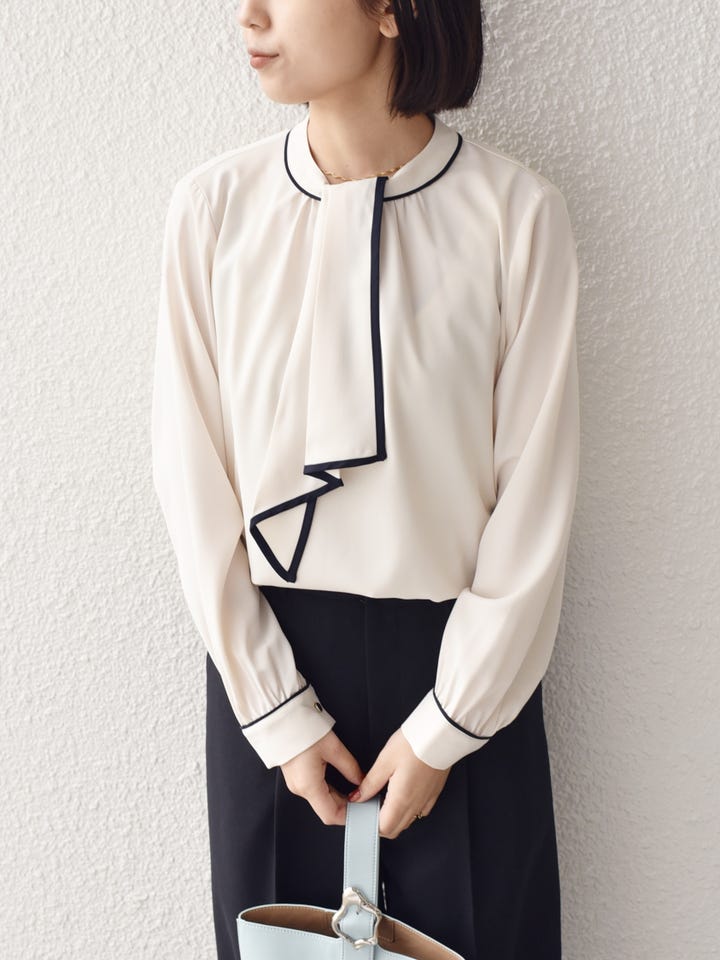 着用アイテム:〈手洗い可能〉バイカラー トリム ボウタイ ブラウス◆