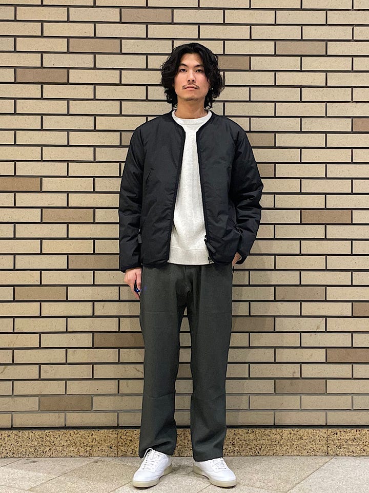 サイズ感:ゆったり目、中に厚手のニット着用できるサイズ感です。