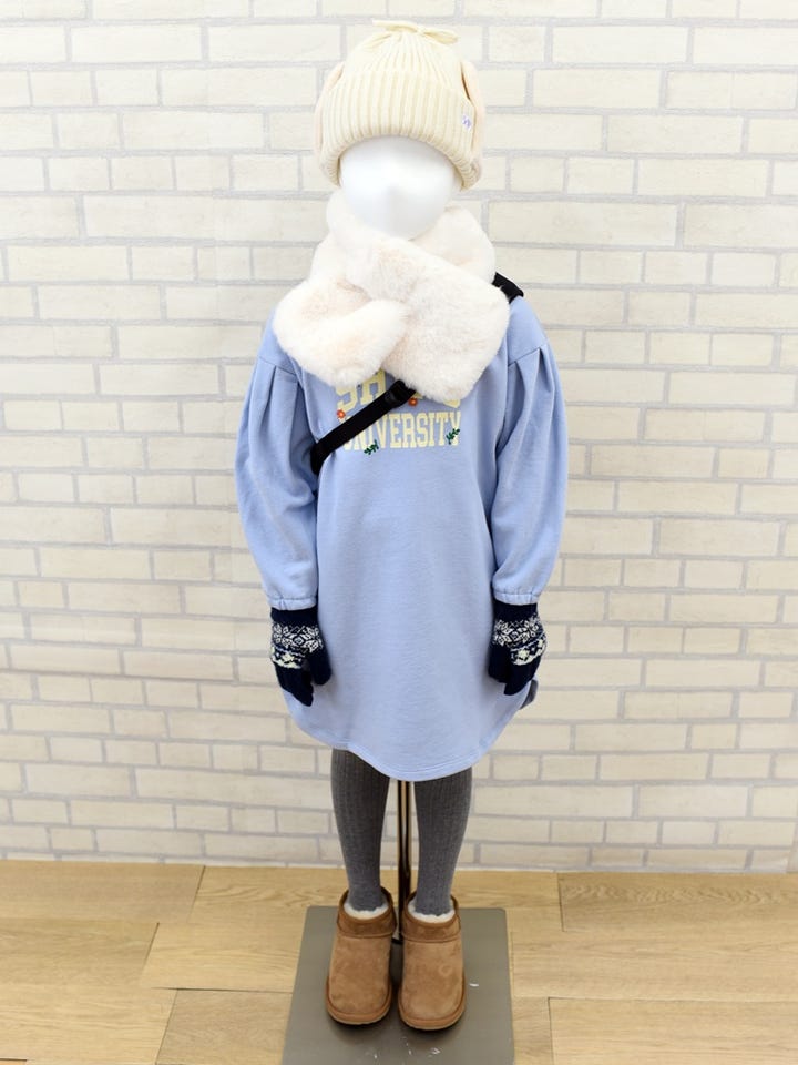 ふわふわのフェイクファーを使用した肌触りの良いマフラー。