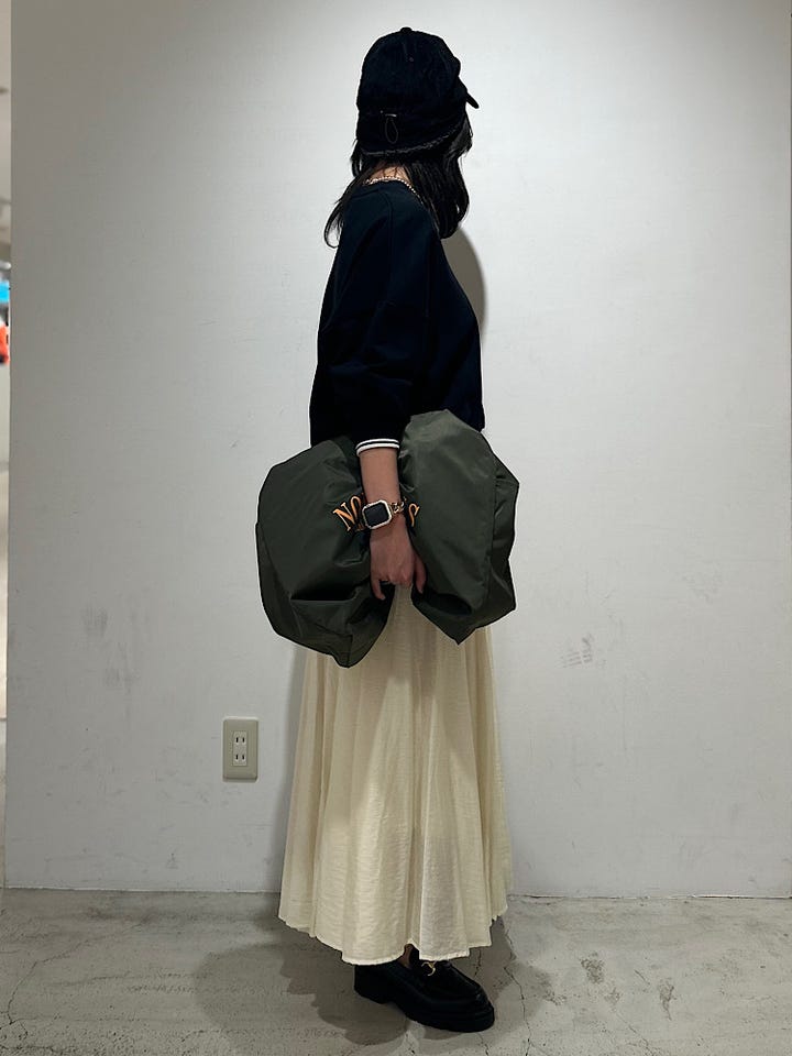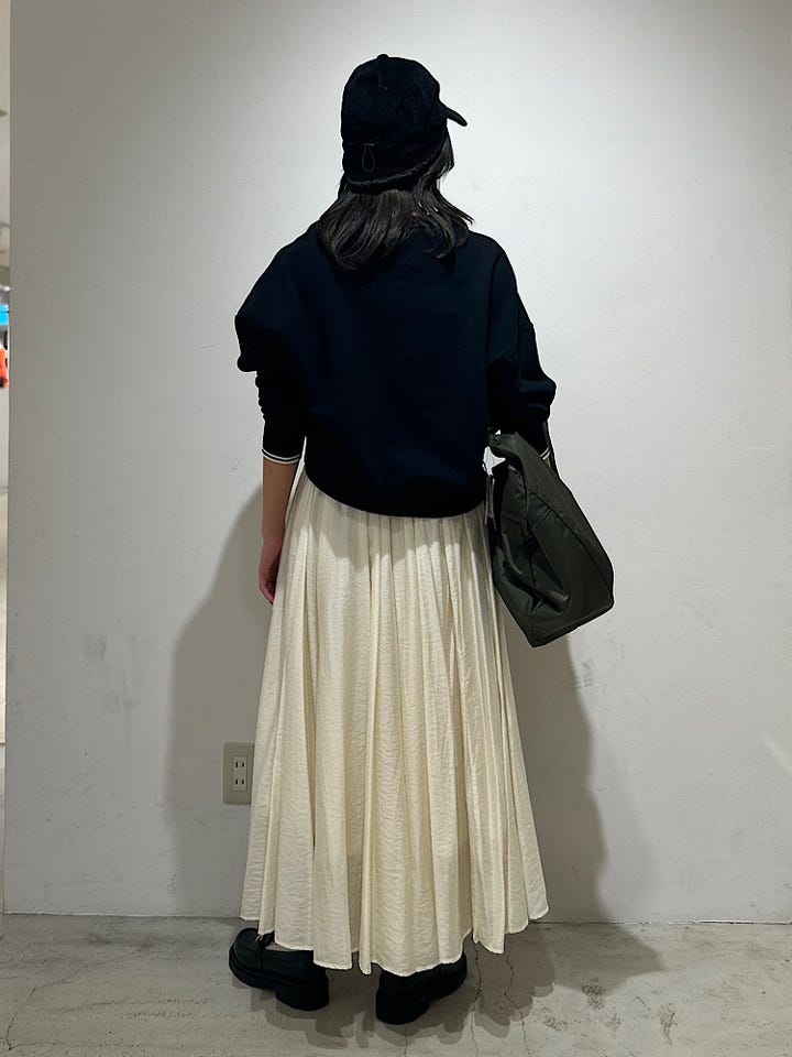 スカートにもパンツにも合わせやすいのが嬉しいポイントです。
