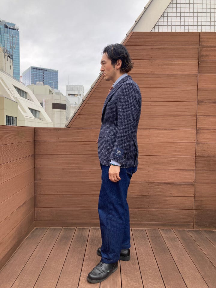 サイズ感:ややタイトなサイズ感。着丈は短めで袖振りもシャープです。