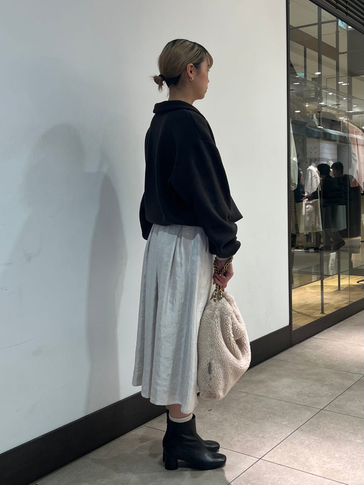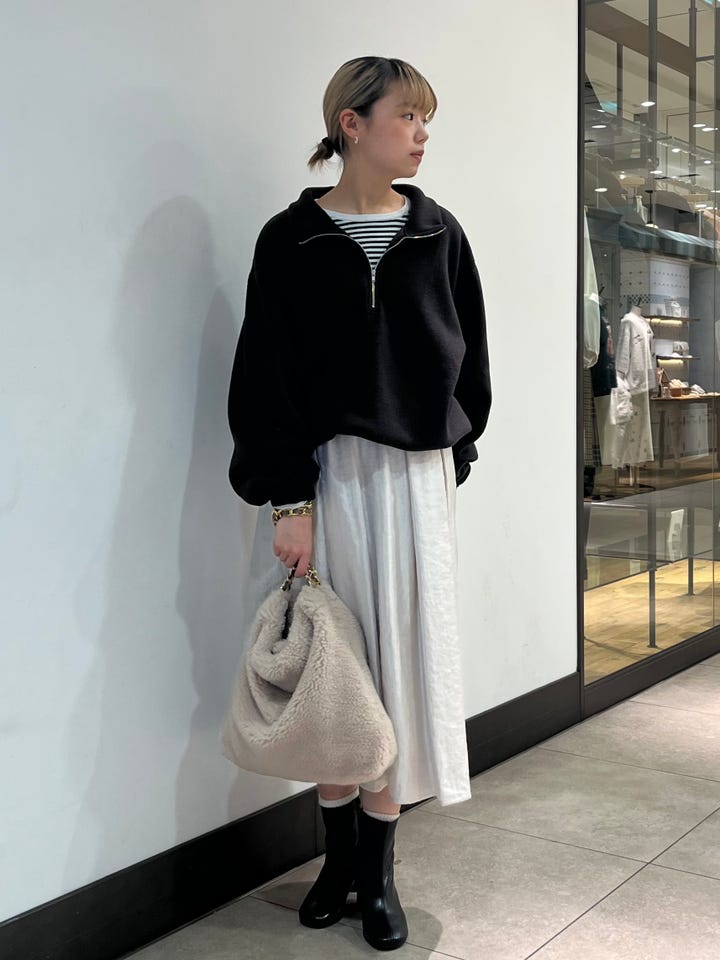 着心地:重ね着しやすいゆったりとしたサイズ感。裾を絞ることで長さやシルエットの調節が可能。