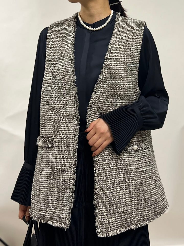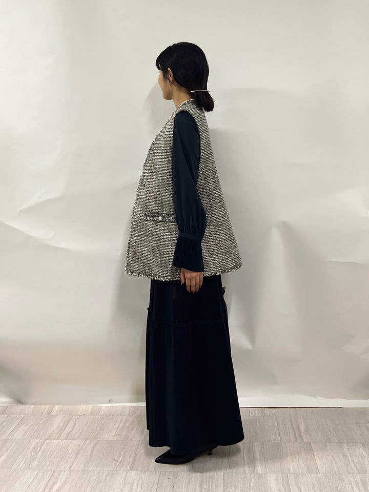 〔ONE SIZE〕トライスピン 杢 ツイード カラーレス ジレ(セレモニー対応可)