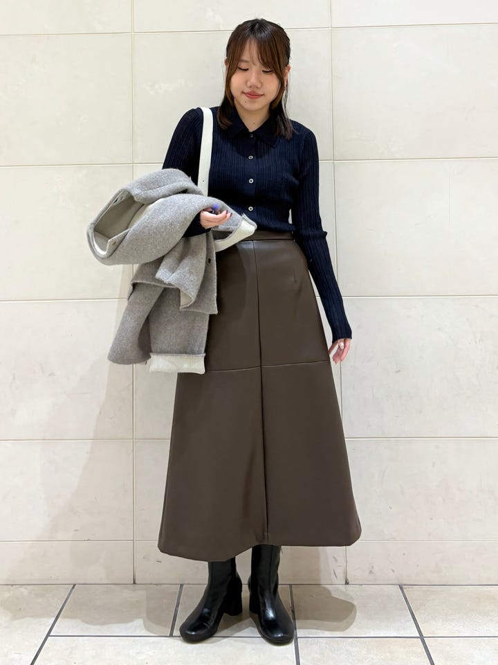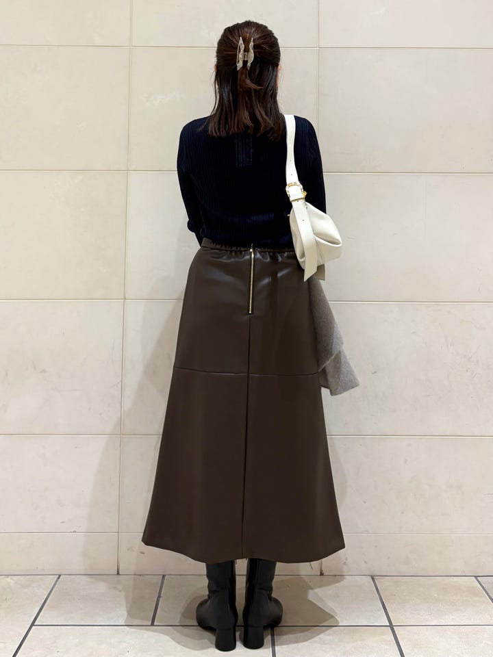 程よく光沢感があり、きれいめにもカジュアルにも合わせやすいです。ニットなどふわっとした素材のトップスと合わせるのもおすすめです。