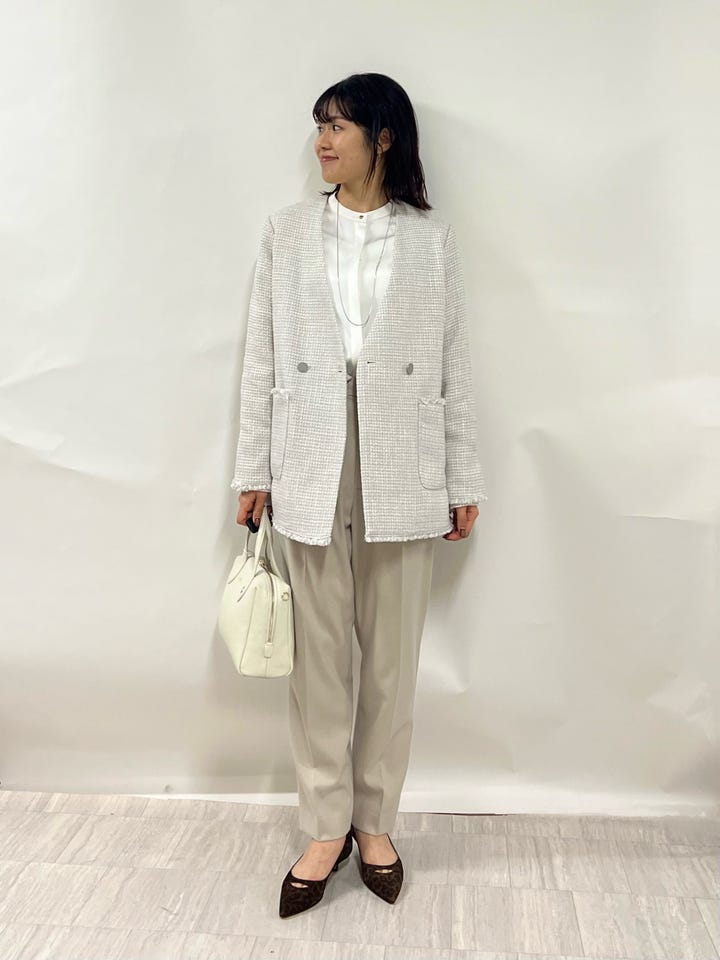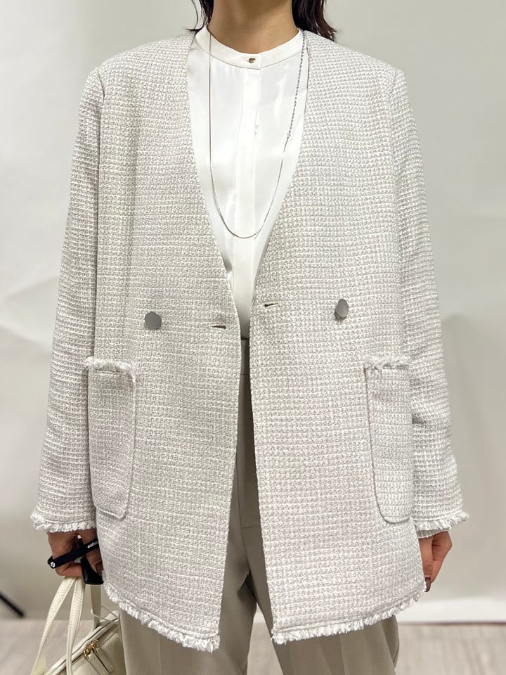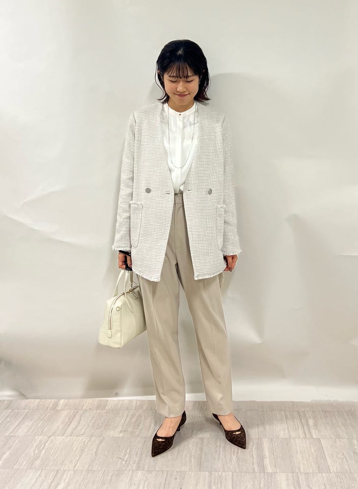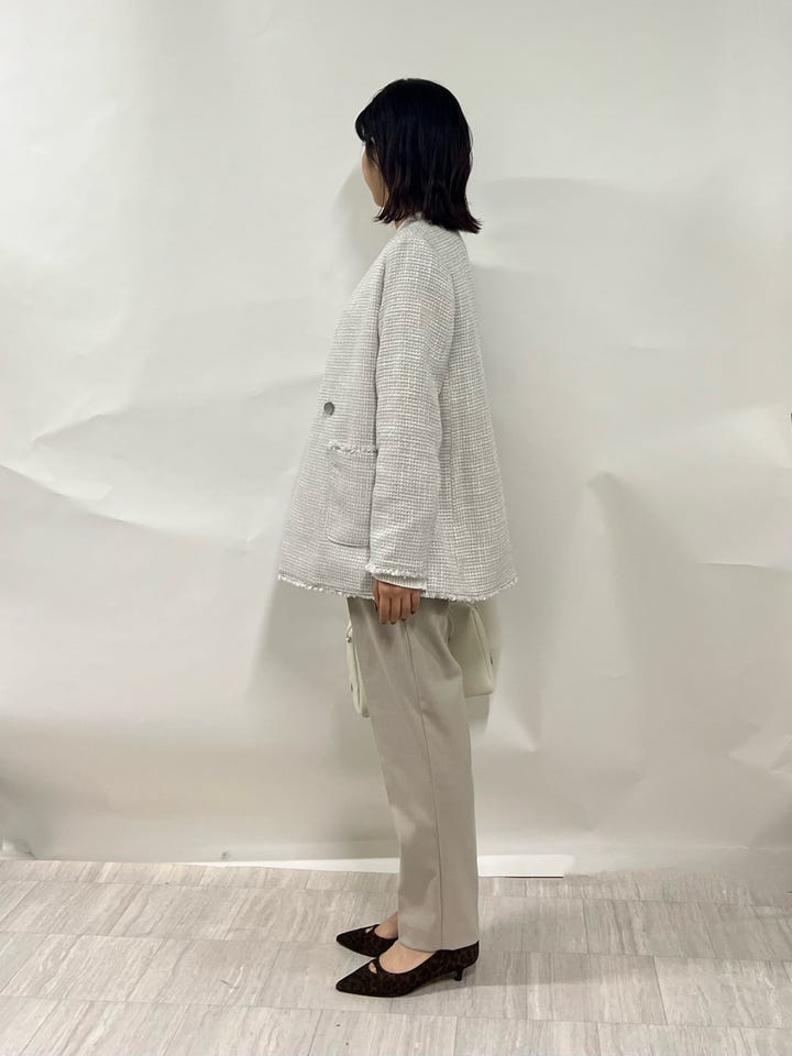 ツイード素材。しっかりとした生地感ですが、着心地はとても軽いです。