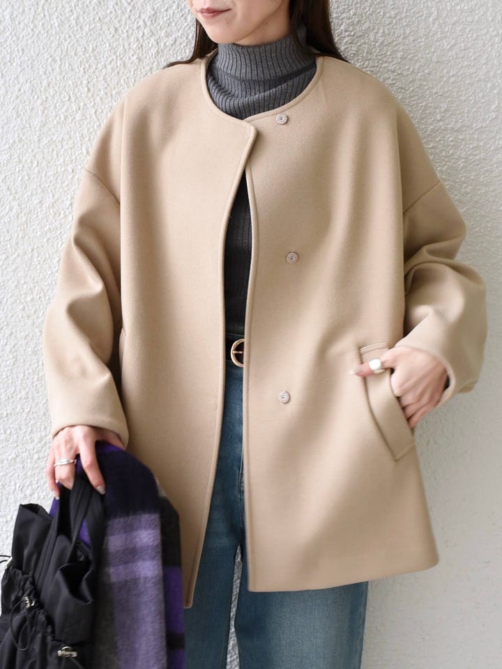 着用アイテム:ジャージーメルトン ノーカラー コート 2◇