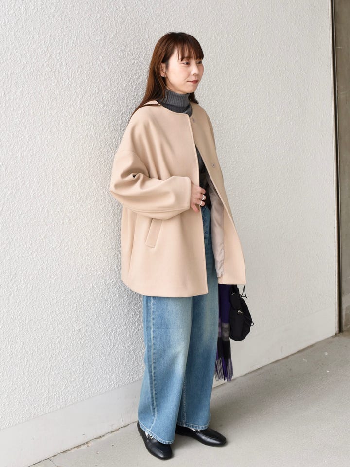 素材感・着心地:ウール見えするメルトン素材。軽くてさっと羽織れ、デイリーに活躍してくれそうです。