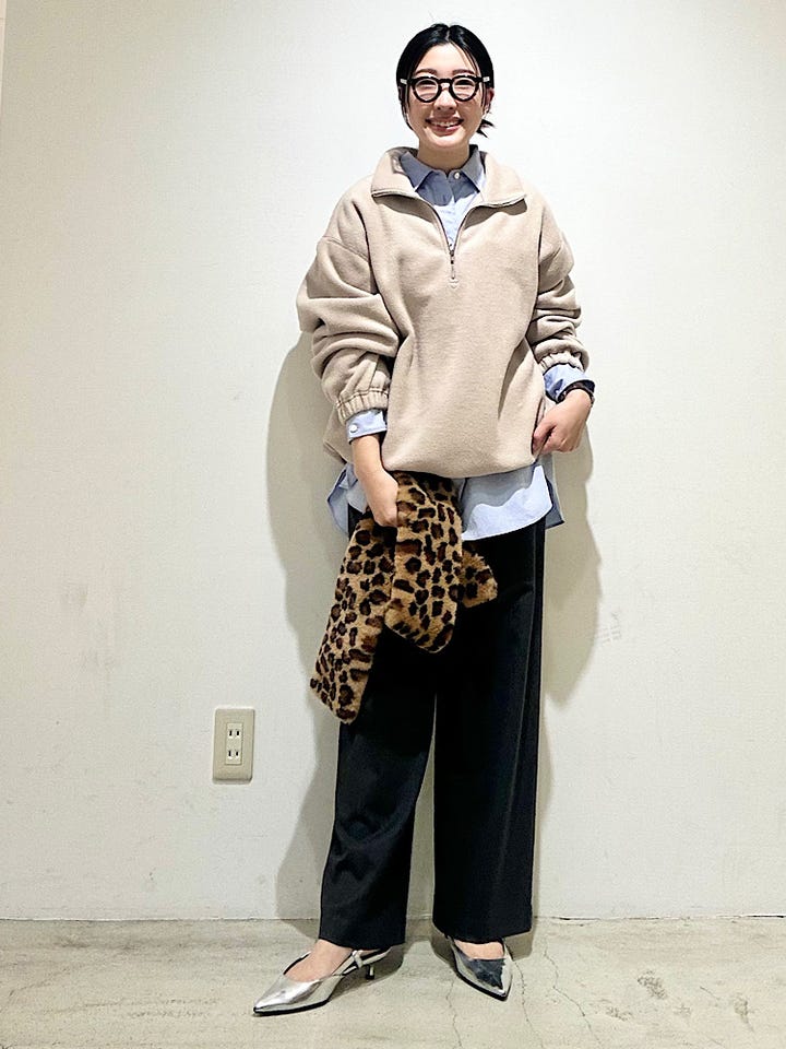 オーバーサイズシャツまでインナー使いできるゆったりしたデザインなので気温調整もしやすいコーデ合わせです◎