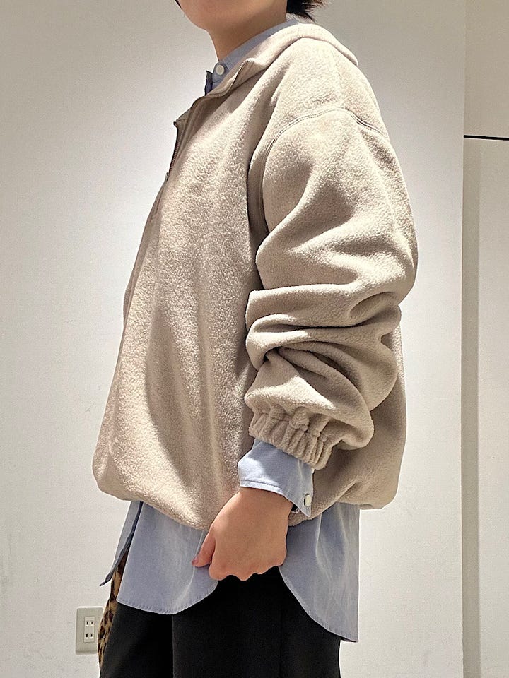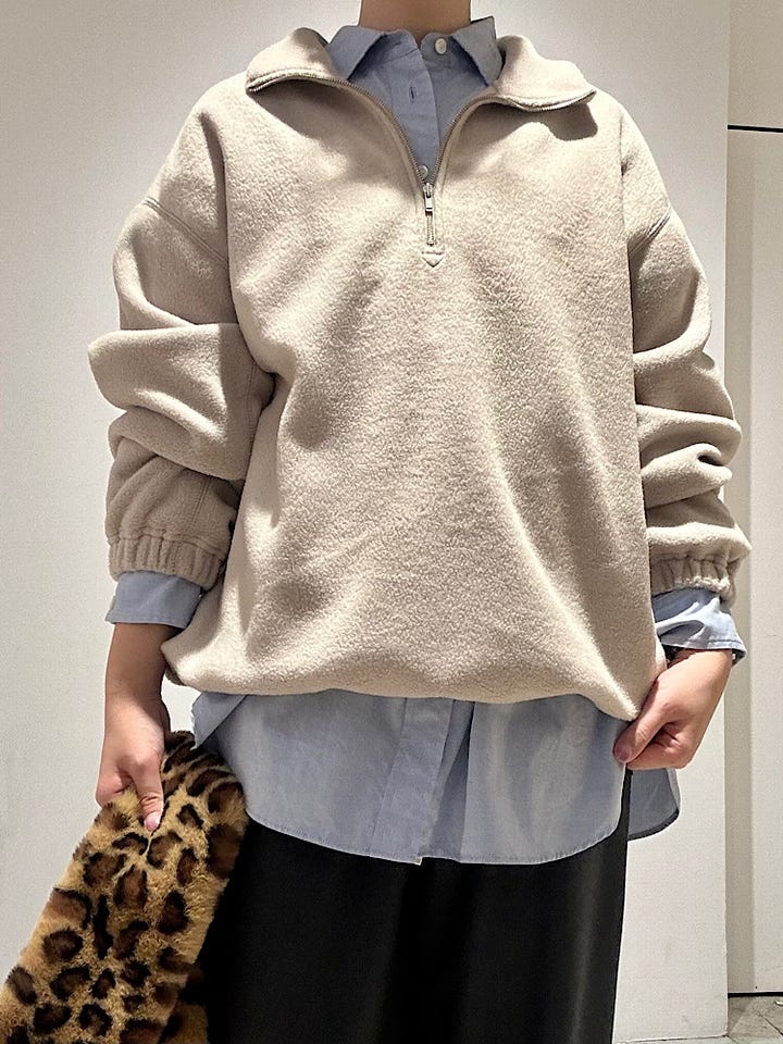 スポーティな印象になりがちなハーフジップトップスはシャツや綺麗めパンツで上品に。