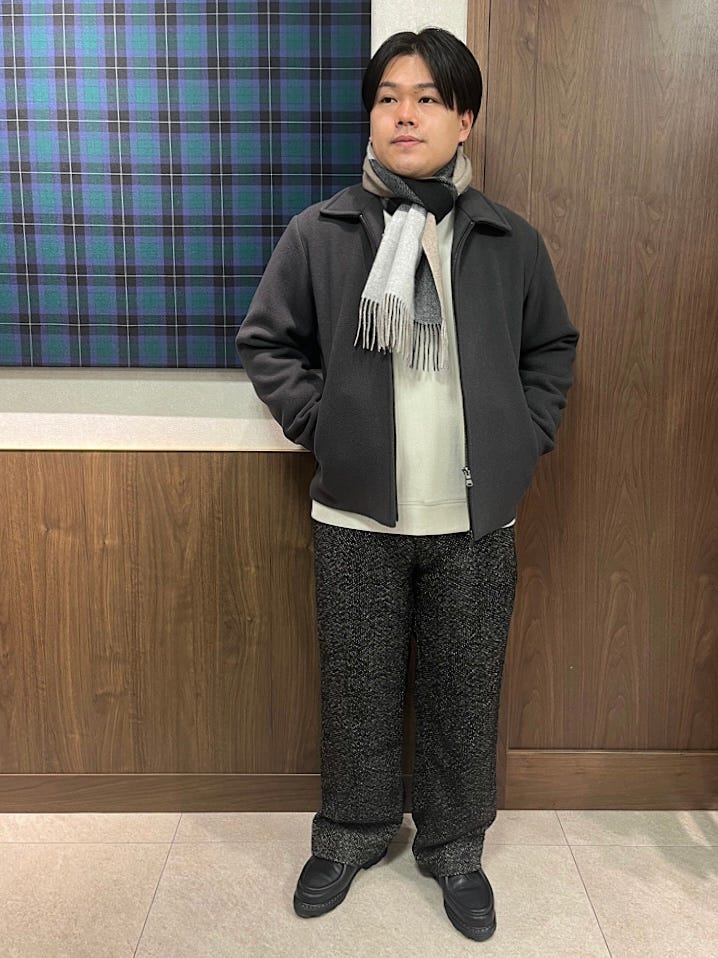 着心地:ポリエステル生地でありながら、ウールライクで綺麗めにも着用可能。サラッとした履き心地。