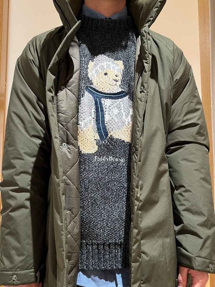 腕や身幅に余裕があるので、厚手のものを着込んでも窮屈しない