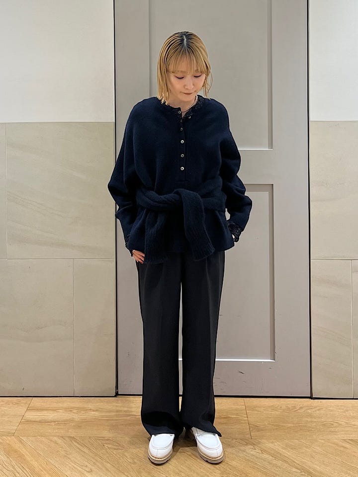 サイズ感:程よく開いた首元で、レイヤードがしやすいニットです