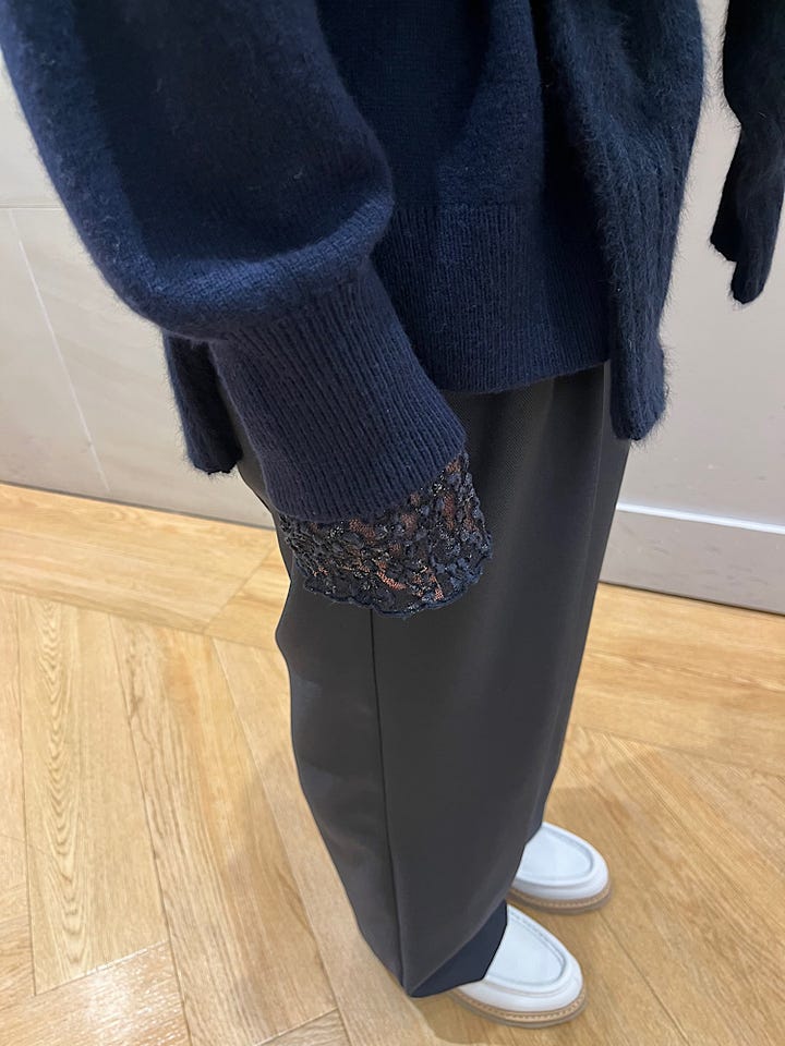 素材感・着心地:柔らかく伸縮性があるレース素材ですが、生地はしっかりしているのでお手入れもしやすいです