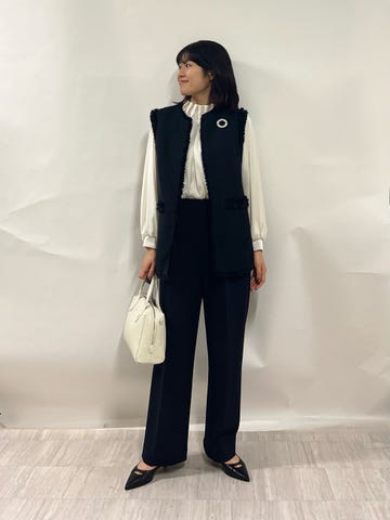 着心地:裏地がついているため、インナーのひびきなど気になりにくいです。太すぎないシルエットで何とでもバランスよく合わせられます。