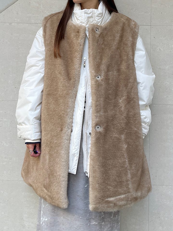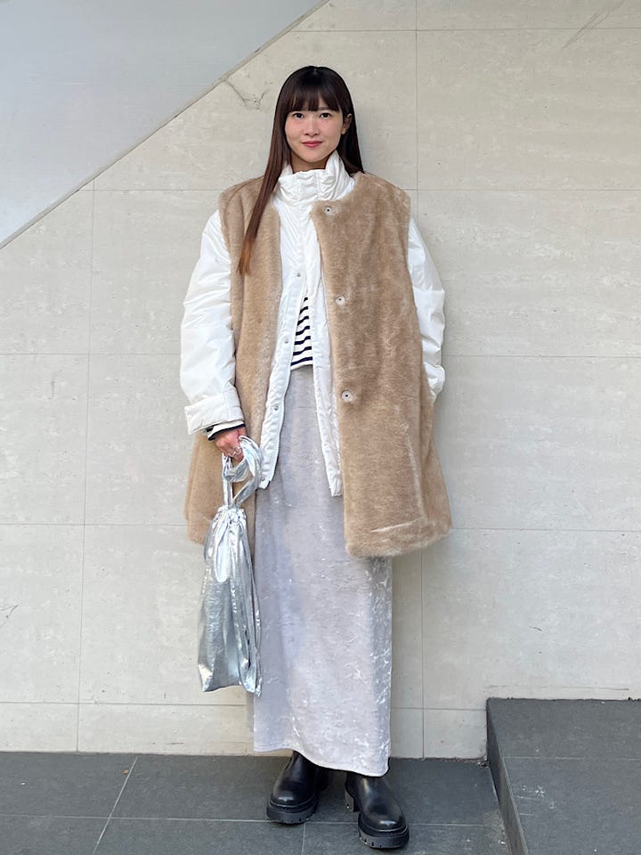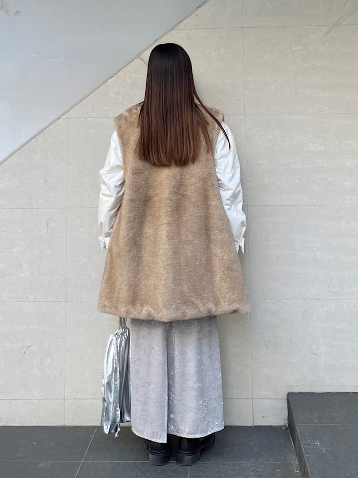 毛足の長いボリュームの出るデザインです。ゆとりがあるので今の時期はアウターの上から重ねるスタイリングもおすすめです!