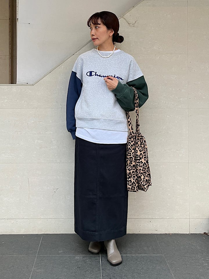 着心地:左右の袖の色が異なるのがポイント。身幅はたっぷりしていますが着丈が長すぎないのでスカートやワイドパンツとも相性が良かったです。