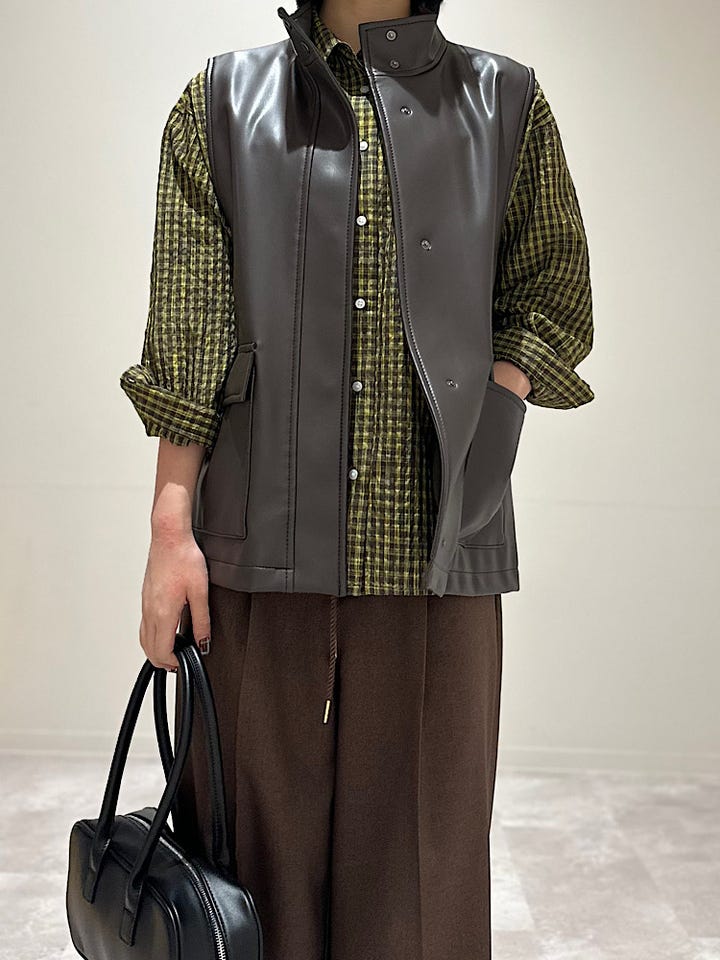 Tシャツ、ニット、シャツなど脇のところも狭くないのでインナーはなんでも入れられて、季節問わずに着られます。