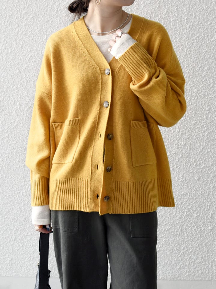 着用アイテム:SHIPS any:〈手洗い可能〉AQUA カシミヤ ミックス Vネック カーディガン