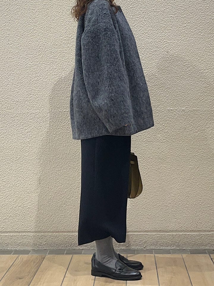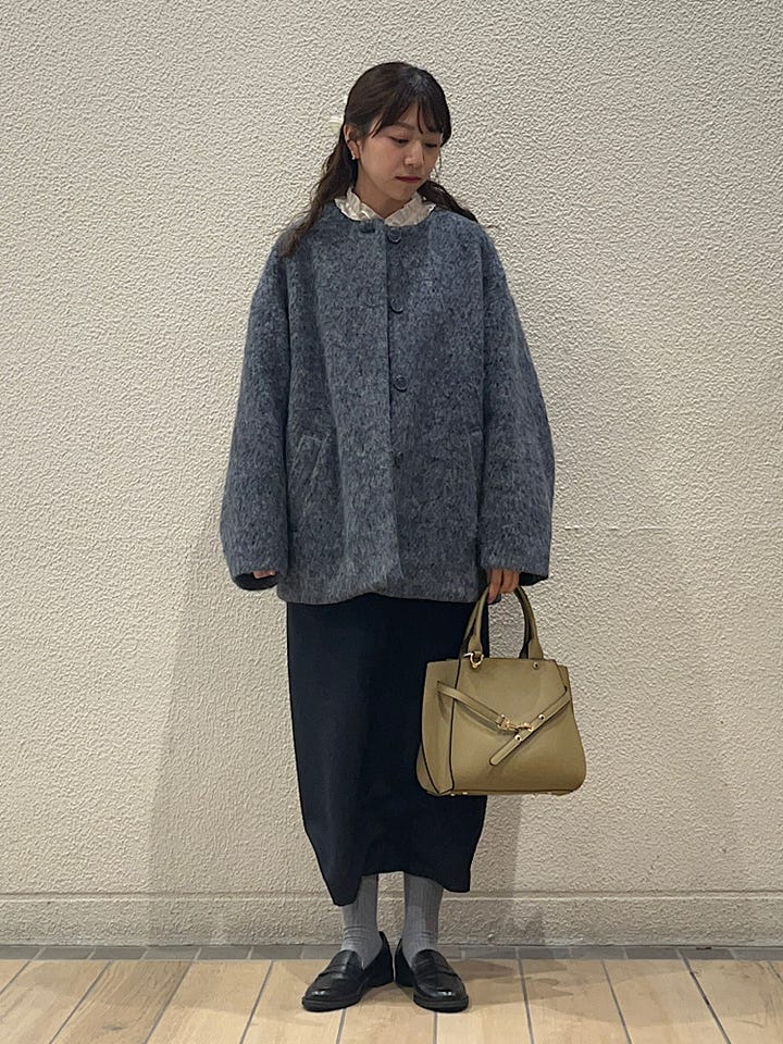 〔ONE SIZE〕《一部追加予約》SHIPS any: シャギー ノーカラー コクーン コート