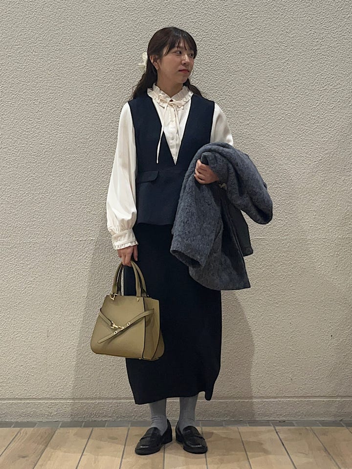 着用アイテム: SHIPS any:〈洗濯機可能〉ダブルクロス Vネック ペプラム ワンピース[NAVY BLUE]