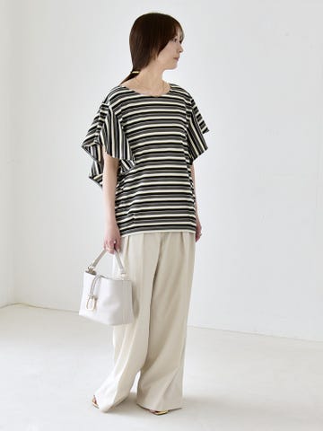 サイズ感:着丈は足首のライン。ウエストには余裕がありますがドローコードで調節可能です。タイトなシルエットですが脚のラインを拾わずにリラックスして履けました。