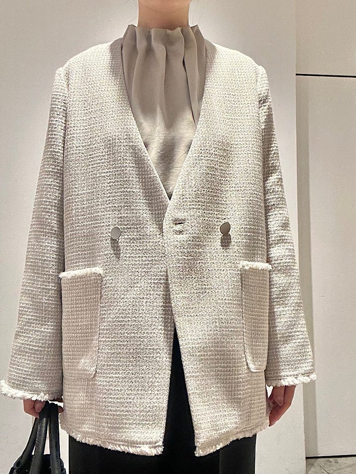 王道のツィードジャケットながらトレンド感がありスタイリッシュなデザインがはれの日ぴったりです◎