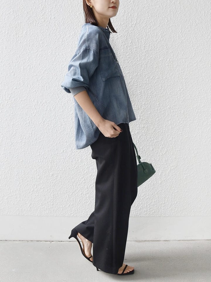■素材感:薄手で透け感のある軽量デニムシャツです。