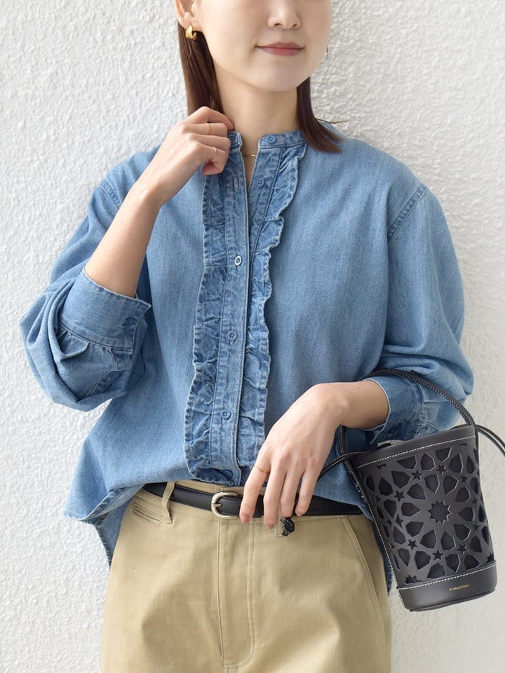 〔ONE SIZE〕《予約》【WEB限定】〈洗濯機可能〉ライトオンス フリル デニム シャツ